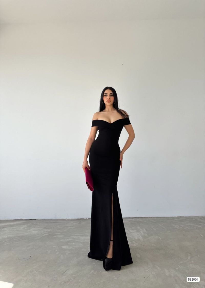 Kadın Dalgıç Kumaş Kayık Yaka Ve Dekolte Detaylı Elbise