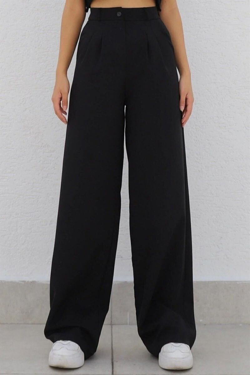 Kadın Yüksek Bel Cepli Ithal Krep Pantolon