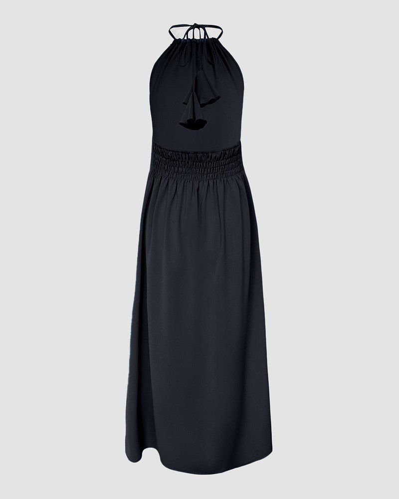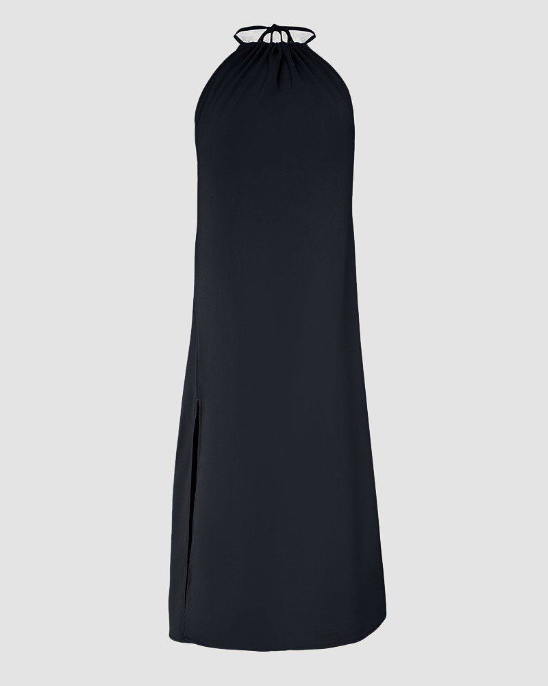 Kadın Boyundan Askılı Halter Kollu Viskon Elbise