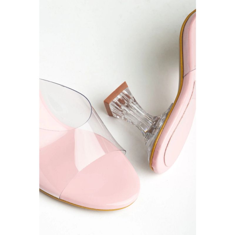 S-619 Pembe Rugan Şeffaf Bantlı Şeffaf Topuklu Yuvarlak Burunlu Kadın Terlik