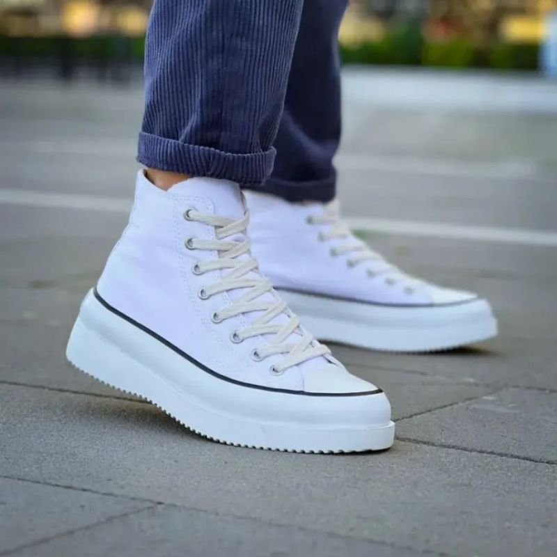 Beyazın saflığını ve yüksek tabanın iddialı duruşunu bir araya getiren bu model, her mevsimin vazgeçilmezi olmaya aday! KB-CX-3 Kuback, klasik yüksek bilekli kanvas tasarımını modern ve kalın bir tabanla buluşturarak hem boyunuzu daha uzun gösteriyor hem de stilinize dinamik bir hava katıyor. Şehir hayatının hızına ayak uyduran bu model, her adımda konfor ve şıklığı bir arada sunuyor.